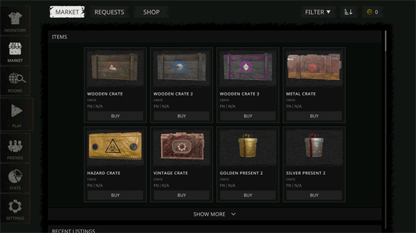 1、进入首页后,可先到市场页面购买所需的物品一边可以更为轻松的生存;