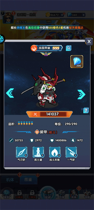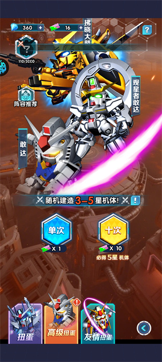 2、普通的扭蛋可随即建造1-5星的机体,可观看每个所产生的不同模样;