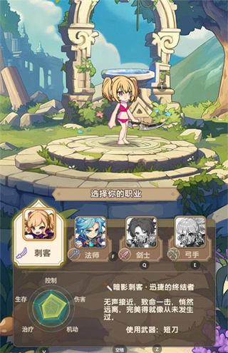 1、进入主页后,可先选择一个职业作为游玩角色;