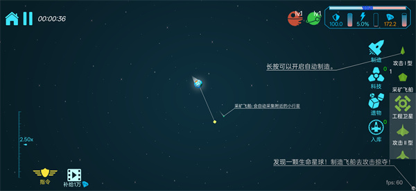 3、记得去撞小行星补燃料,不然星球资源耗尽就熄火,生存压力真的不小;