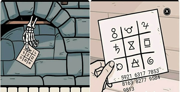 4、掀开壁炉旁的白布触发剧情,再靠对讲机和频道数字,轻松解锁四个符号密码。