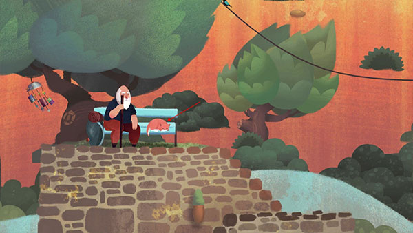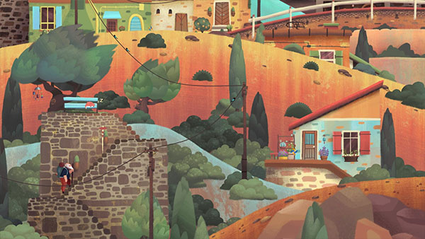 4、场景绘画特别有深意,一会儿是海岸黄昏,一会儿又是半山腰的小镇。