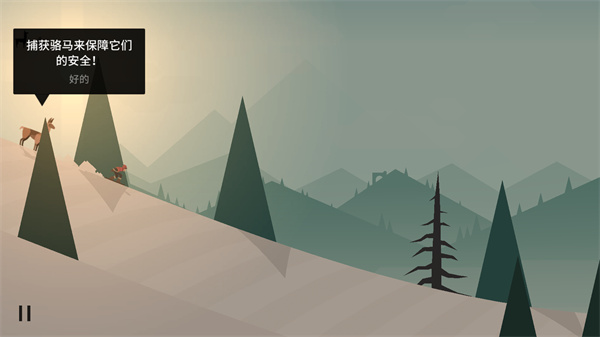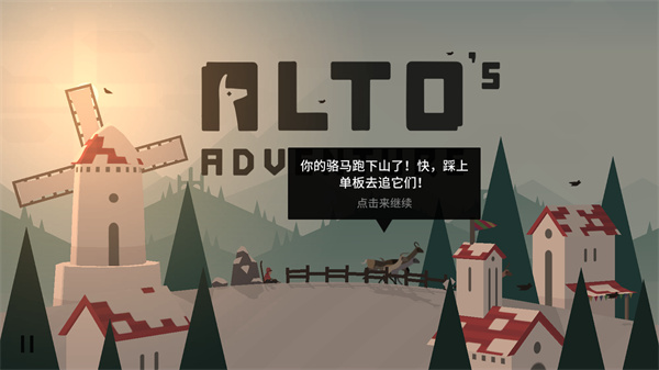 1、点击屏幕任何地方,踩上单板去追赶跑掉的骆马;