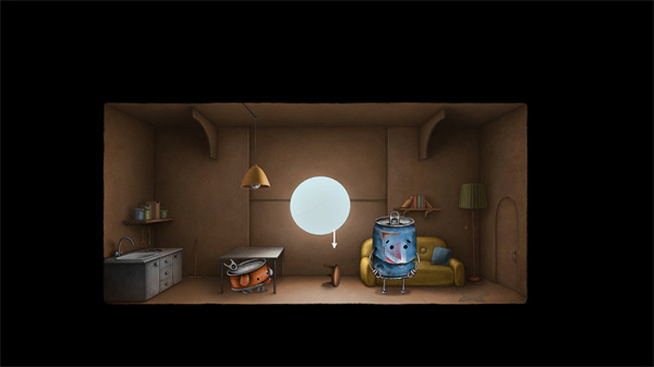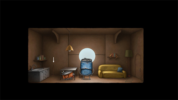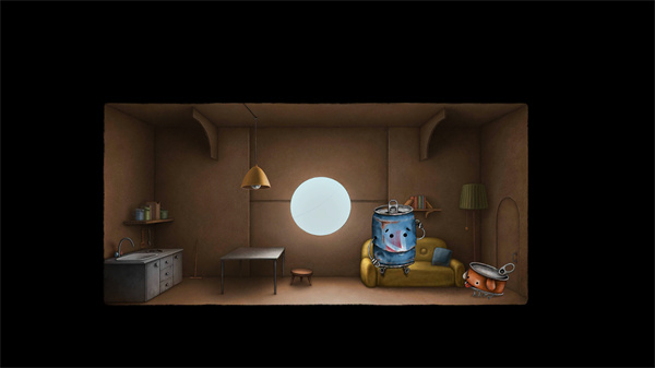 2、进入纸箱房间内部,点击那只可爱的铁罐小狗;