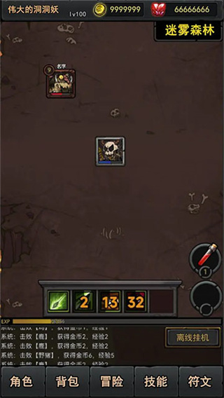 3、在战斗过程中监控角色状态,灵活释放技能或点击离线挂机按钮;