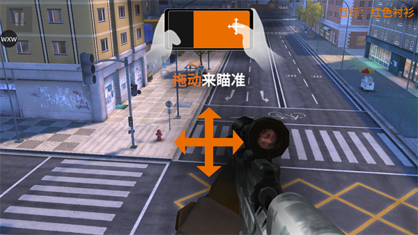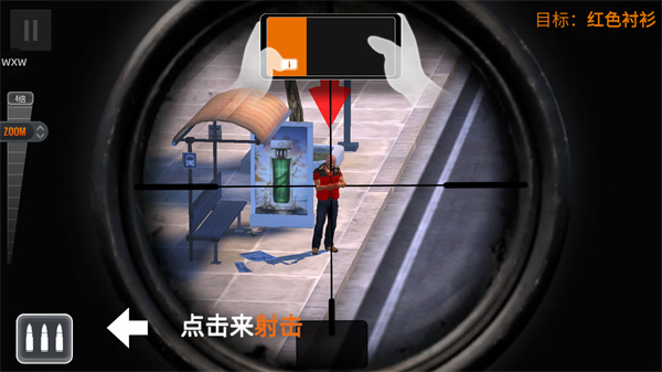 3、锁定红色衬衫目标,点击子弹图标射击;