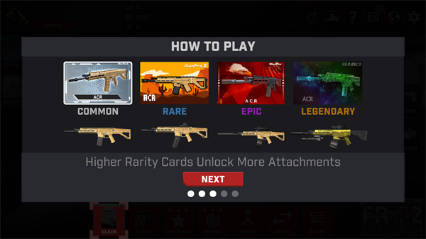 3、提升卡牌的稀有度等级,可以为你的武器解锁更多配件;