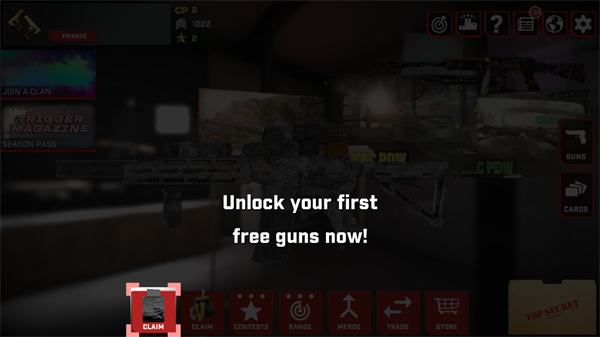 4、点击主界面下方的礼包图标,现在就领取你的首批免费枪械。