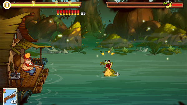 2、点击屏幕瞄准射击,消灭水里冒出来的鳄鱼;