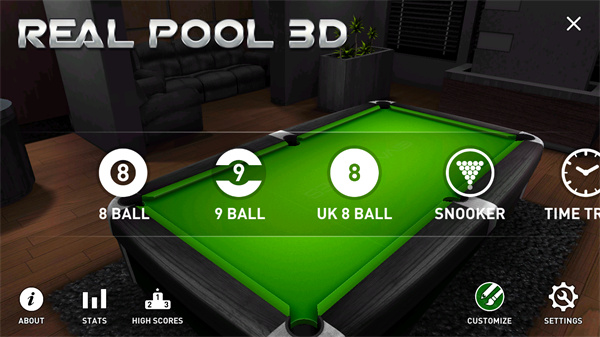 1、在游戏主菜单中选择心仪的台球模式,包含八球或斯诺克等多种玩法;