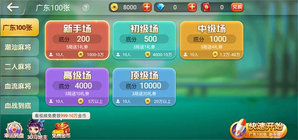 3、根据您的金币数量选择合适的场次,新手玩家建议先从底分较低的场次开始;