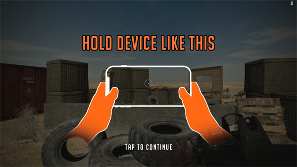 3、按照屏幕提示以横屏方式双手握持设备,点击屏幕任意位置即可进入正式的射击训练场景;