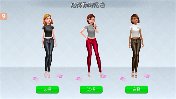 2、在三位风格各异的美少女中进行挑选,确认你心仪的初始角色并开启时尚之旅;