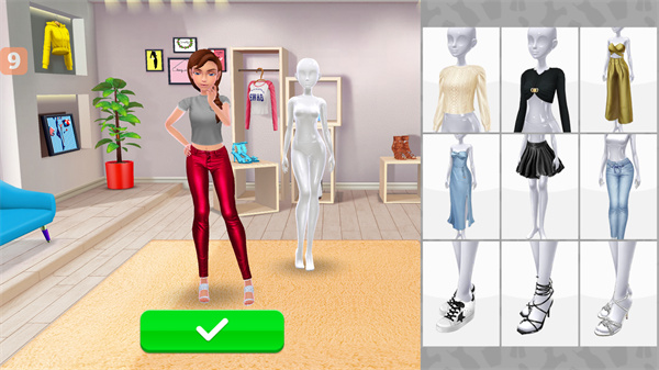 3、进入专业的私人试衣间工作室,为你的模特挑选最合适的上衣、裙装以及鞋子;