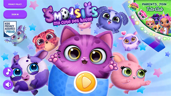1、点击屏幕中央显眼的播放键,开启属于您的可爱宠物小屋之旅;